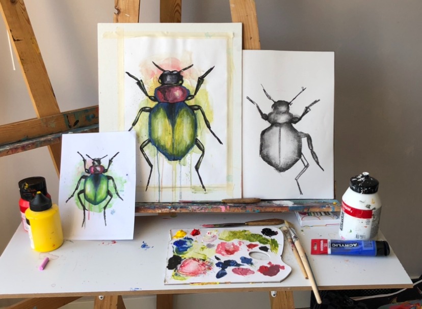 In this class you will paint a beetle. I take you by the hand and step by step show you how to create a beautifull sheeld by using different layers and putting all the colors and legs in the right place. We start by creating a beautiful underground and when this takes some time to dry, we will do some charcoal skething. In the end you will have your own beetle to be proud of.